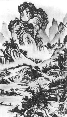 Го Си. «Деревня на высокой горе». Шёлк, тушь. 11 в. Музей Гугун. Пекин.