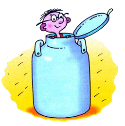 А Петька сидит в бидоне и думает: «Что же это теперь будет?!».