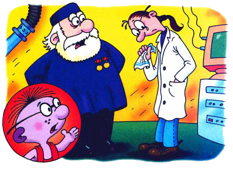 Тут пожилой микроб, Петькин прадедушка, подошёл к микроскопу и говорит учёным: