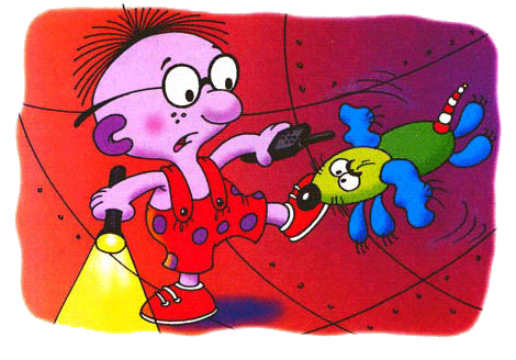 Ангинка прибежал к Петьке-микробу и закричал.: