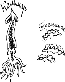 — Конечно, кальмар. Но лично я уже много лет работаю над изучением трепангов. Трепанги съедобны и, как утверждают японцы, целебны. У трепангов интересное строение. Полюбуйтесь на них. Красавцы!