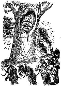 Разумеется, прежде всего Богатырь в лес ударился; видит, один дуб стоит — он его с корнем вырвал; видит, другой стоит — он его кулаком пополам перешиб; видит, третий стоит и в нем дупло — залез Богатырь в дупло и заснул.