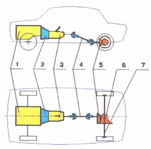 Рис. 1. Простейшая кинематическая схема автомобиля классической компоновки