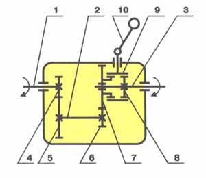 4, 5, 6, 7 – шестерни постоянного зацепления
