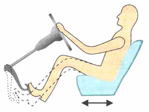 В этом положении нога не должна испытывать неудобства. Затем педаль сцепления выжимается полностью (до упора), при этом нога не должна тянуться. Незначительный изгиб в колене сохраняется. Этого мы добиваемся продольным перемещением сиденья.