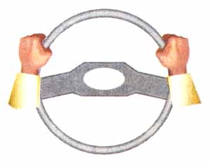РУЛЬ. Мы уже знаем, как правильно держать рулевое колесо. В указанном на рис. 9 положении руки имеют наибольшую свободу управления, готовы к любому быстрому маневру и не устают, так как своим весом лежат на рулевом колесе. Руль надо держать двумя руками, избегать управления одной рукой. Отрывать руку от руля следует только при необходимости, например, при перехвате руля на повороте, при переключении передач, при включении стеклоочистителей на ходу и т. д. Пижонство в управлении одной рукой может привести к неприятности: при наезде колесом автомобиля на препятствие или при проколе колеса руль одной рукой можно не удержать.