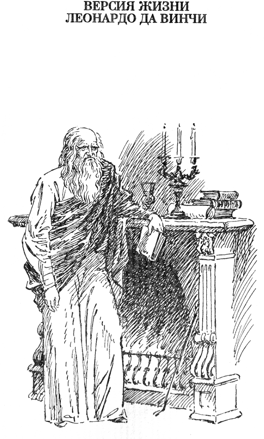Тусклый свет сочился сквозь высокие узкие окна, дробясь в концентрических розетках, как в плохо шлифованных призмах; вдали виднелись луга и деревья, тающие в зелёном сиянии, — там была река Амас. Белоснежные стены большой спальни закоптила сажа от какого-то опыта Леонардо — а их было в эти дни не много, потому что, хоть ум Леонардо был быстр и по-прежнему полон идей, тело изменяло ему, как слишком туго натянутая верёвка блока, не выдерживающая большого напряжения. Книги, бумаги и свитки были сложены вдоль стен и на длинных полках; на столах и на полу лежали карты, чертежи, инструменты, линзы и кое-какие другие вещицы его изобретения: калориметр для измерения расширения пара, высокие, странной формы сосуды для гидромеханических исследований, весы с посеребрёнными полукруглыми рамами, гидрометр, чтобы замерять влажность воздуха, кривые зеркала и устройства для демонстрации затмения в соответствии с идеями, высказанными Иоаннесом де Сакробусто в его «Sphera Mundi».