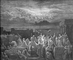 15 Священники в священных одеждах, повергшись пред жертвенником, взывали на небо, чтобы Тот, Который дал закон о вверяемом святилищу имуществе, в целости сохранил его вверившим.