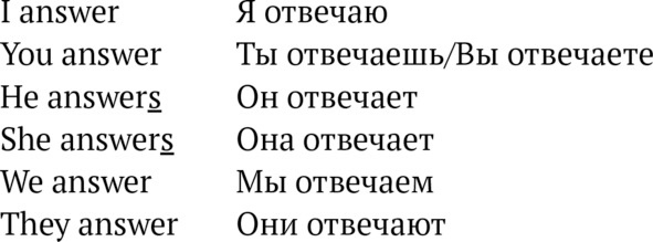 Давайте возьмем глагол TO ANSWER – отвечать, и проспрягаем его в настоящем времени:
