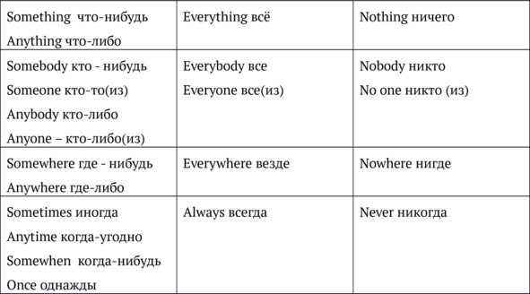 Обязательно отметить, что в вопросительных и отрицательных предложениях вместо some– используется всегда any-.