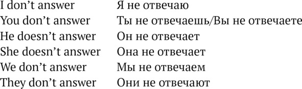 Теперь отрицание. Здесь нам понадобится вспомогательный глагол to do – который на самом деле значит «делать», но об этом позже. Сейчас просто запомните спряжение: