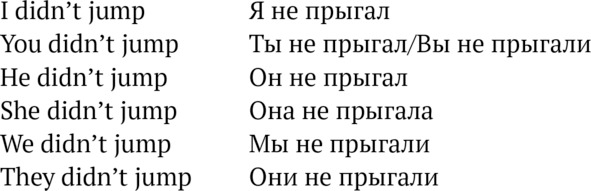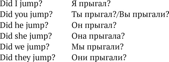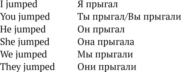 Вы когда-нибудь слышали про неправильные глаголы? Так вот, они применимы только в прошедшем времени, и только в утвердительной форме. Но сначала давайте рассмотрим пример с обычным правильным глаголом TO JUMP – прыгать. В утвердительной форме к слову добавляется окончание —ed. Нужно отметить, что данное прошедшее время в Английском не делится на совершенное/не совершенное (как «делал/сделал» в русском), оно может переводиться и так и так, в зависимости от контекста.