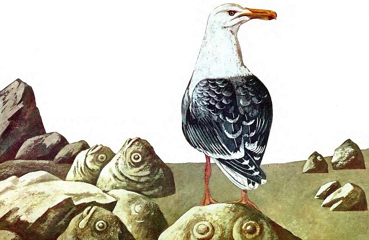 Но что за чудеса! Как ни налегали они на вёсла — лодка ни с места. Будто море студнем застыло, будто дно лодки приросло к воде. Рыбаки дружно поднимали вёсла, а лодка и на вершок не подвигалась вперёд.