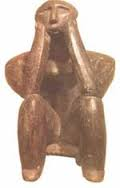 Коли закінчилися танці, жриці відвели Царицю-Бджолу і її мужа на дах, звідки ті драбиною спустилися всередину притулку. Спершу вдалися до комори, де на головній стіні був малюнок, що зображав Велику Богиню як Матір-Породіллю. Сиділа з піднятими вгору і заламаними у ліктях руками та зігнутими в колінах, широко розставленими ногами, наче збираючись родити. З її рук спливала жовто-чорна, прозора тканина, закривала усю постать, але крізь вічка сітки видно було тіло. Посередині, де знаходився живіт, було намальовано сім концентричних кіл, що позначали пуп Богині, який одночасно був пупом світу та представляв домашнє вогнище. Під народжуючою Богинею була вирізьблена голова бика.
