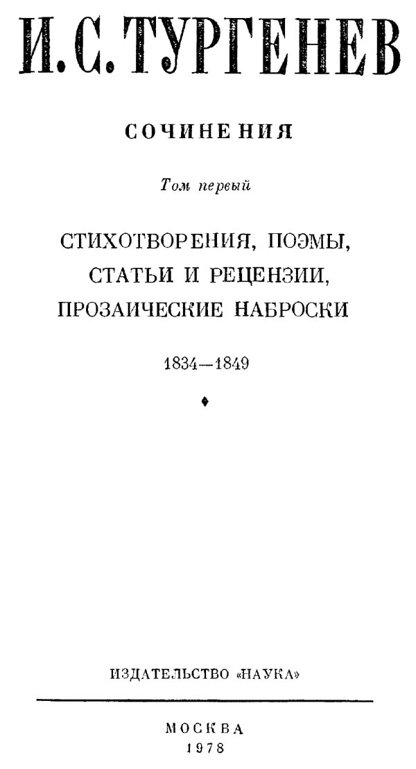 Условные сокращения, принятые в первом томе, относятся ко всем томам издания. Общий именной указатель, перечень произведений и переводов Тургенева, по разным причинам не вошедших в издание, неосуществленных замыслов, а также указатель произведений будут помещены в последнем томе.