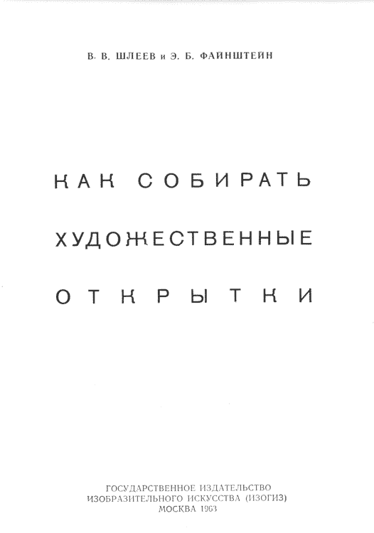 Брошюра «Как собирать художественные открытки» является вторым значительно измененным и дополненным изданием нашей работы «Художественные открытки и их собирание», выпущенной в 1960 году и вызвавшей ряд положительных откликов читателей.