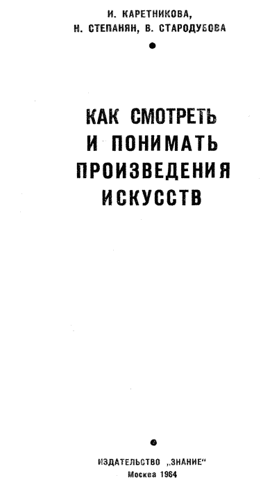 После встречи руководителей партии и правительства с деятелями культуры в 1962 и 1963 годах и Пленума ЦК КПСС по идеологическим вопросам интерес к проблемам развития изобразительного искусства особенно возрос. Горячие обсуждения этих проблем вышли за рамки дискуссий специалистов. Все более широкие массы людей стремятся постичь сокровища искусства, проникнуть в его затаенные глубины.