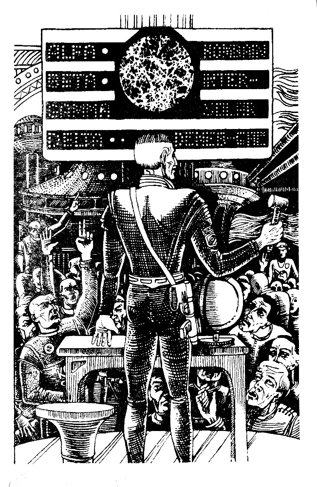 Большинство пассажиров было из Торгового флота, но лишь немногие щеголяли эмблемами больших компаний. В основном это были бичкомеры, или вольные торговцы, люди, которые по вздорности характера или по каким–либо другим причинам не прижились в мощных организациях и кочевали с одного корабля–аутсайдера на другой, люди, стоящие на самой нижней ступени в иерархии Торгового флота.