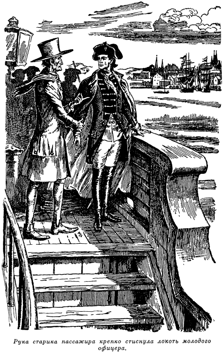 Задумчивость, в которую был погружен молодой человек, внезапно нарушил пушечный залп, возвестивший наступление вечера; взгляд юноши еще был прикован к этим горделивым символам британского могущества, когда он почувствовал, что рука старика пассажира крепко стиснула его локоть.