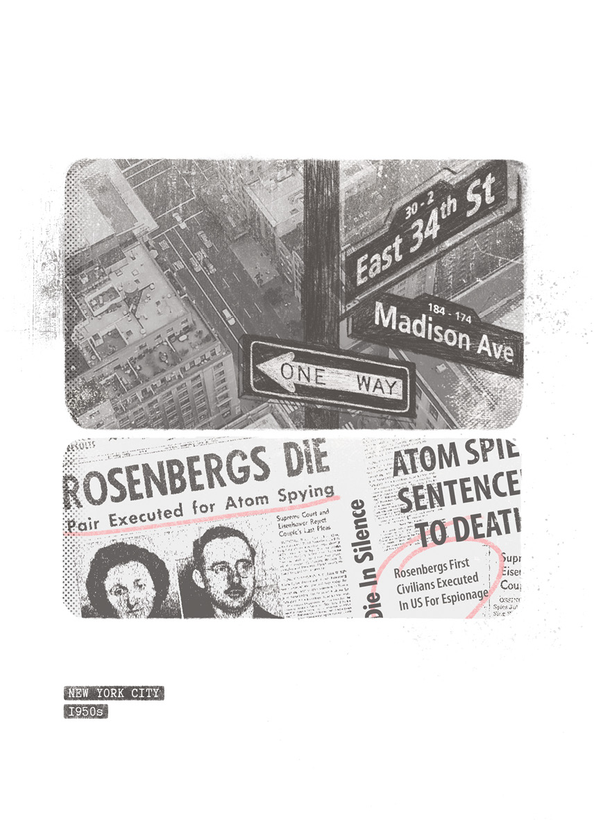 Про Розенберґів говорили й по радіо, і на роботі, аж доки вони остаточно поселилися в моїй голові. Таке саме було, коли я вперше побачила людський труп. Упродовж кількох тижнів мертва голова — тобто те, що від неї лишилося, — вигулькувала переді мною то зі сніданкової яєчні з беконом, то з-за обличчя Бадді Вілларда, який, власне, й був винуватцем мого знайомства з трупом, і невдовзі мені вже здавалося, ніби тягаю за собою ту голову на шворці, наче просяклу оцтом чорну безносу повітряну кульку.
