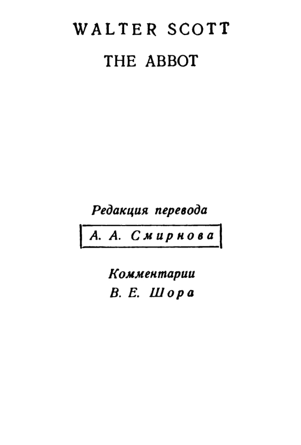 Следует добавить, что инкогнито автора весьма укрепило его в смелом решении заново снискать расположение публики и наделило его преимуществом, несколько напоминавшим плащ-невидимку, которым пользовался Джек Убийца Великанов. Выпуская своего «Аббата» сразу же вслед за «Монастырем», он следовал хорошо известной практической мудрости Бассанио: