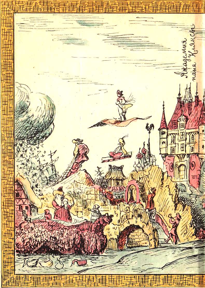 Потом мне часто доводилось ходить и в другие сказки со всякими поручениями: то за сапогами — в сказку про Кота в сапогах, то за самим Котом, когда в кладовой пана Кляксы завелись мыши. А однажды, когда нечем было подмести двор, я даже ходил за метлой к ведьме из сказки про Лысую Гору.
