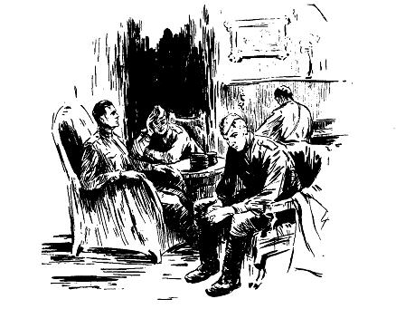 Святочны выгляд гасцінай псавалі абшарпаныя плашч-палаткі і зялёныя з чорнымі крапінамі маскхалаты, кінутыя на спінкі крэслаў. Аўтаматы сціпла прытуліліся ў кутку. Танканогі кафейны столік, на якім стаяла шэсць задымленых кацялкоў, дзець было некуды, ён стаяў у самым цэнтры гасцінай.