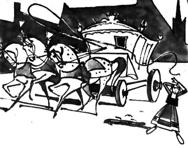 Прямо над ней были белые раздувающиеся животы лошадей. Матя отскочила в сторону. Тяжёлые копыта лошадей ударили о мостовую. Большая позолоченная карета остановилась.
