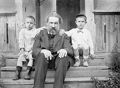 Виктор Львович Кирпичев с внуками. Слева — Миша Леонтович. Справа — Витя Радциг.