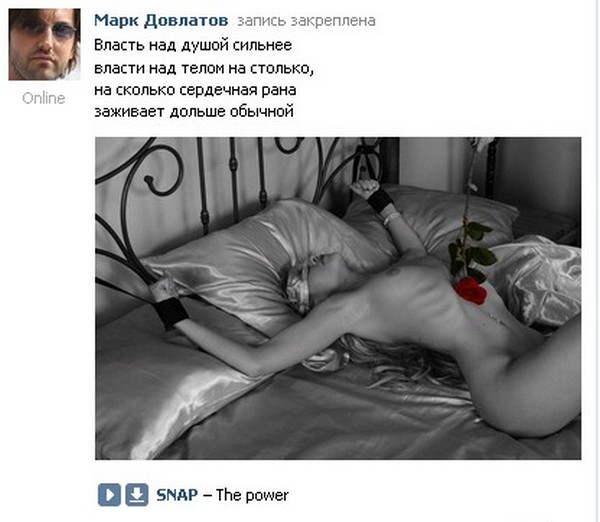 - А, ты про это… Так ВК все телки просто подурели – подавай им доминанта в подарочной упаковке: я хочу быть слабой с сильным мужчиной…