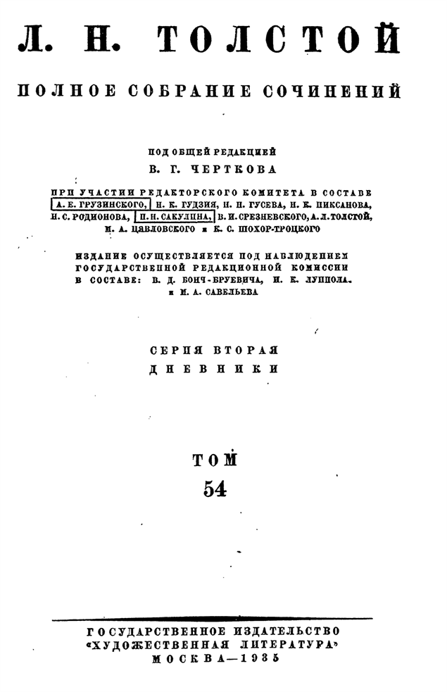 Полного собрания сочинений Л. Н. Толстого, предоставленной
