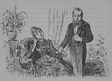 Докторъ вошелъ въ будуаръ. На кушеткѣ полулежала мадамъ Человѣкова. Лицо ея было напудрено до нельзя. Она протянула доктору руку и сказала:
