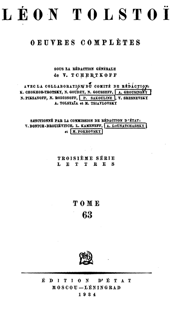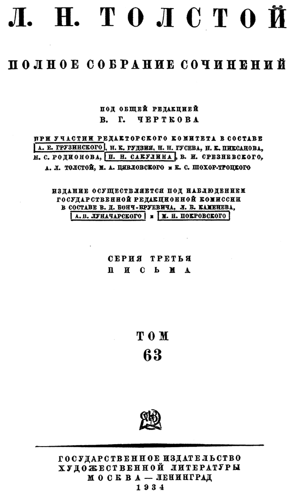Полного собрания сочинений Л. Н. Толстого, предоставленной