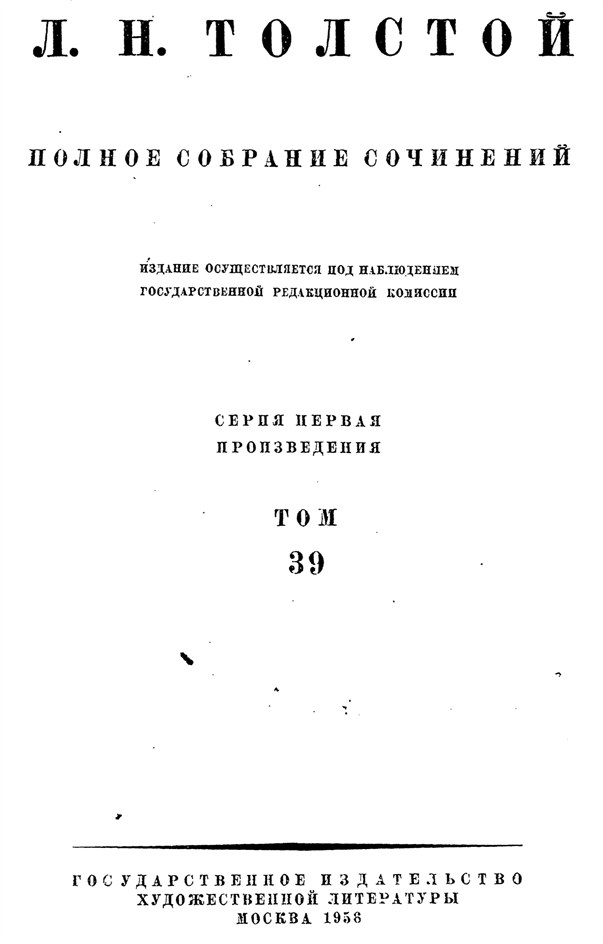Толстовские работы, вошедшие в тридцать девятый том, написаны были в период с 1893 по 1898 г., когда в России, с одной стороны, начиналось перерастание капитализма в империалистическую стадию, а с другой — происходил процесс соединения марксизма с рабочим движением.