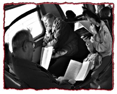 В вагон зашли двое мужчин приличного вида, — видимо, приятели. Вошли, выбрали скамеечки, уселись друг напротив друга. Договорили какой-то, начатый на улице разговор, затем один из них достал из сумки мятую книжку в яркой обложке и принялся читать. Второй посмотрел немного в окно, поразглядывал соседей, а потом ткнул товарища в плечо: