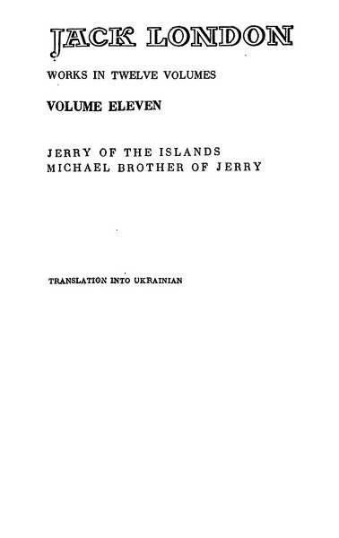 Мабуть, не варто далі обтяжувати цей вступ до моєї повісті такими подробицями, хоча можу запевнити, що я знаю їх доволі. Сподіваюся, мені пощастило переконати вас, що пригоди мого героя-собаки в цьому романі — це справжні пригоди в справжнісінькому людожерському світі. Знаєте що? Коли ми з дружиною вибрались у те плавання на «Міноті», то застали на судні прегарне щенятко, ірландського тер’єра, привченого ганяти чорношкірих. Воно мало гладеньку шерсть, як у Джеррі, і кликали його Пеггі. Якби не та Пеггі, не було б і цієї книжки. Належала вона шкіперові «Міноти», чудовій людині. Ми так уподобали щеня, що моя дружина, коли «Мінота» розбилась, свідомо, безсоромно вкрала його в шкіпера. І я визнаю, що свідомо й безсоромно допомагав своїй дружині в тому злочині. От як ми полюбили Пеггі! Любу нашу, славну Пеггі, давно вже поховану в морі біля східного узбережжя Австралії.