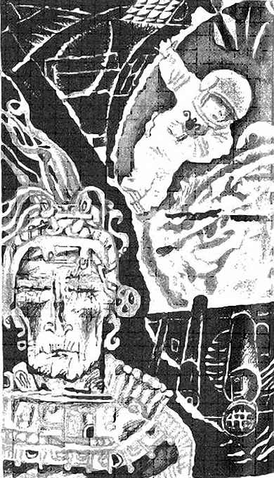 Великий Ум думает больше формулами, математическими знаками Длинная нить формул и знаков вдруг сменяется образом, — яркой картиной того, что должно получиться в мире реальных вещей, когда формулы будут претворены в жизнь. Он думает напряженно, сосредоточенно, и такая тишина в его кабинете! Ни единого звука не долетает сюда из внешнего мира. А в соседней комнате, за четырьмя изоляционными стенами, смятенный шепот врачей. Они еще продолжают консультироваться, хотя все уже ясно для каждого: «близок конец». Вот они выходят в большую комнату, залитую искусственным солнечным светом, где ожидают пятьсот ученых — помощников Великого Ума.
