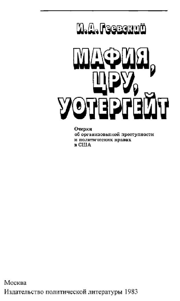 Г28 Мафия, ЦРУ, Уотергейт: Очерки об организованной преступности и политических нравах в США.— М.: Политиздат, 1983.— 288 с., ил.