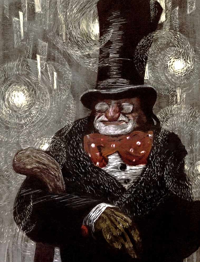 Представьте себе цилиндр, вышиною втрое более обыкновенных цилиндров; очки, которые с успехом могла бы надеть сова; короткую шубу-бочку, длинненькие и тонкие ножки, обутые в галоши № 15, длинные космы волос, свиное рыло и вместо трости посох, в добрую сажень вышиной. Чучело картинно шагало по тротуару, не замечая меня. Весь трепеща, приблизился я к герою кунсткамеры, откуда он, вероятно, и сбежал. Самым молитвенным шепотом, способным растрогать очковую змею, я произнес: