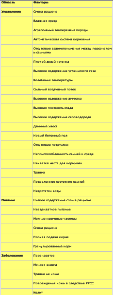 Пару минут понаблюдайте за свиньями с обкусанным хвостом, ушами или боками, и вы увидите, что все они подавлены. Это показатель того, что окружающая их среда далеко не идеальная. Факторы, обусловливающие аномальное поведение свиней перечислены в таблице ниже.